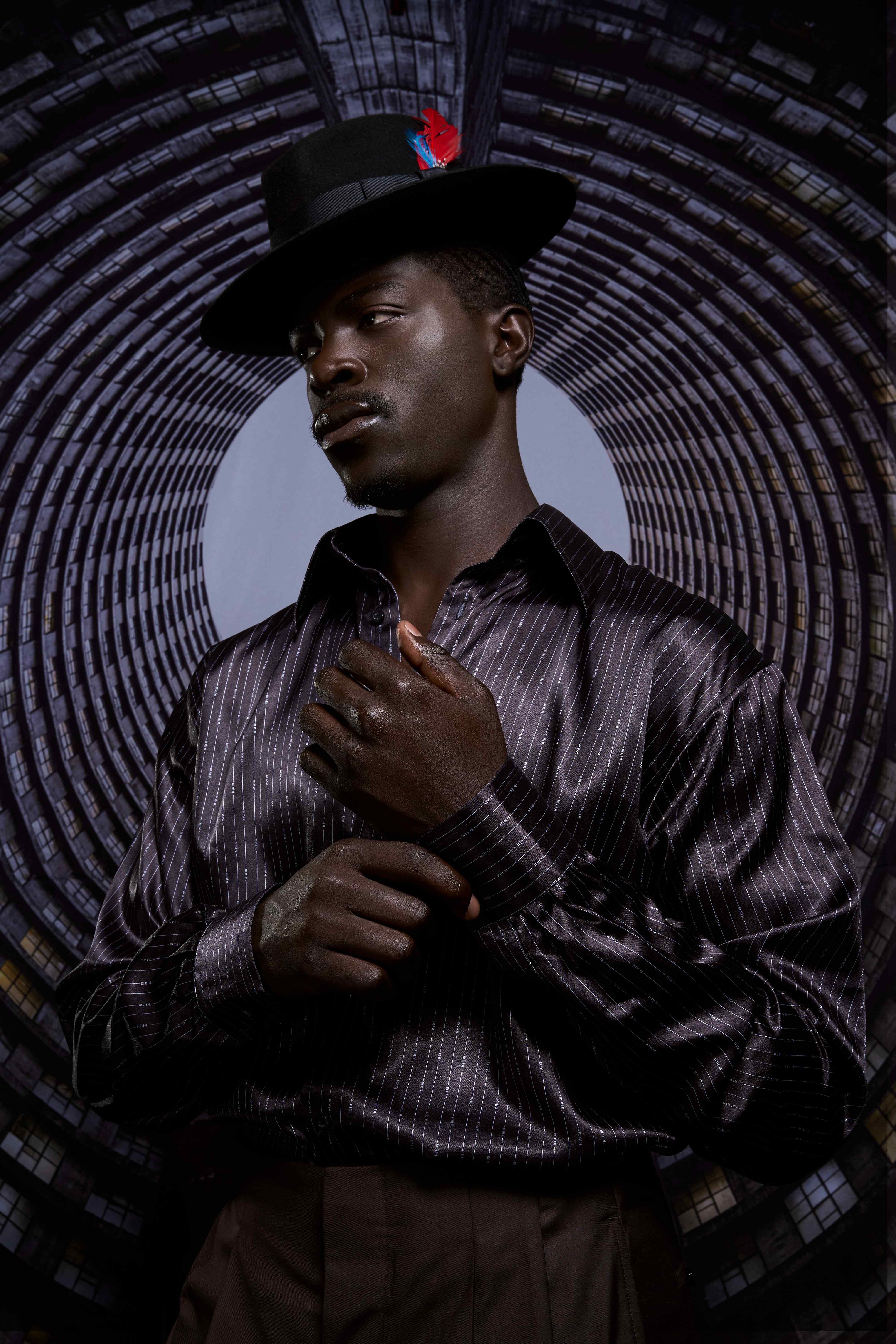 Classic fit shirt in satin-striped black Oxford, buttoned tabs, tab collar.