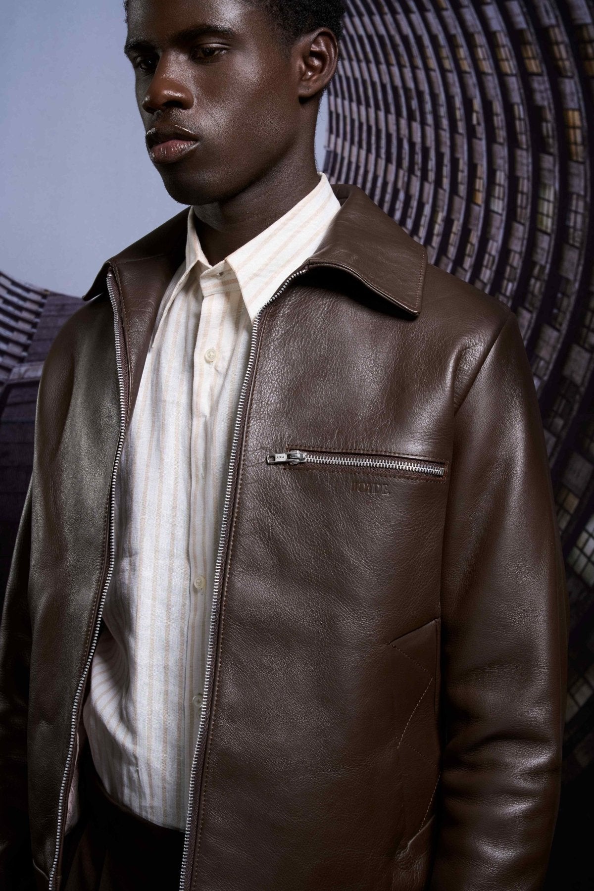 Leather jacket with smooth nappa cow leather in cacao brown.
