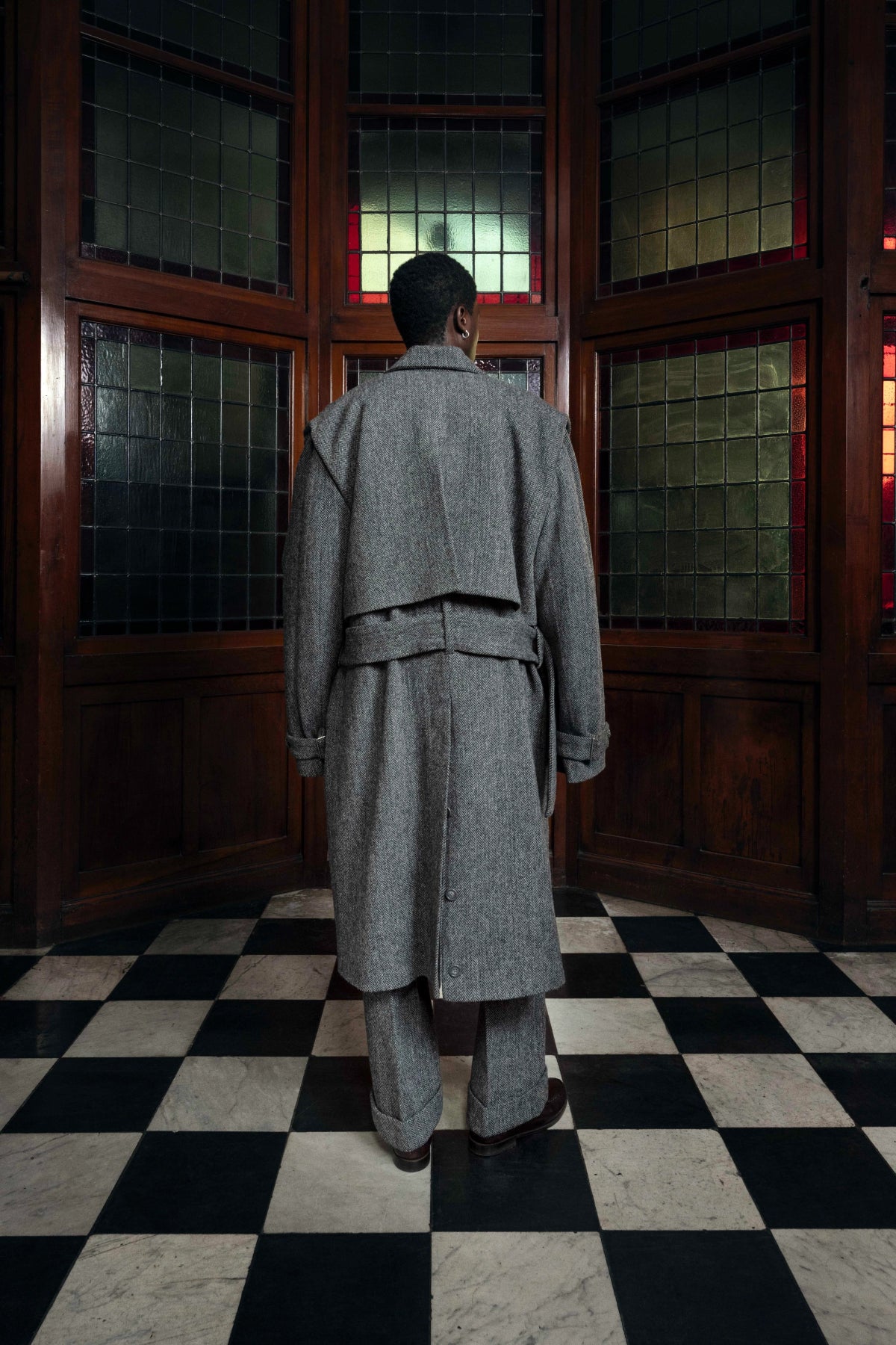 Oversized tweed storm flaps trench coat