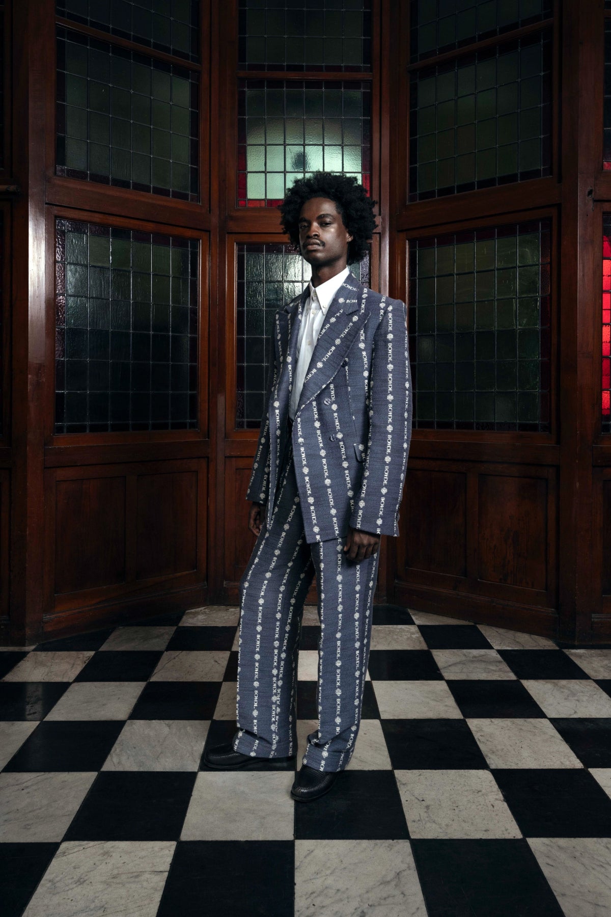 Structured classic fit Pinstripe jacquard double breasted tailored jacket in charcoal and white wool blend