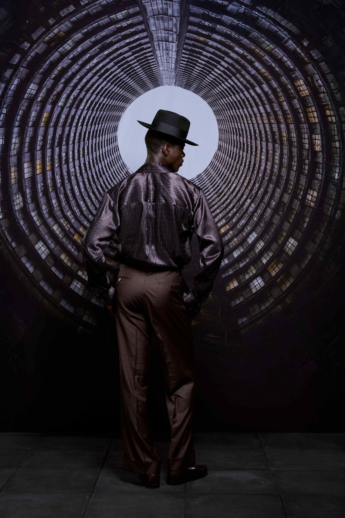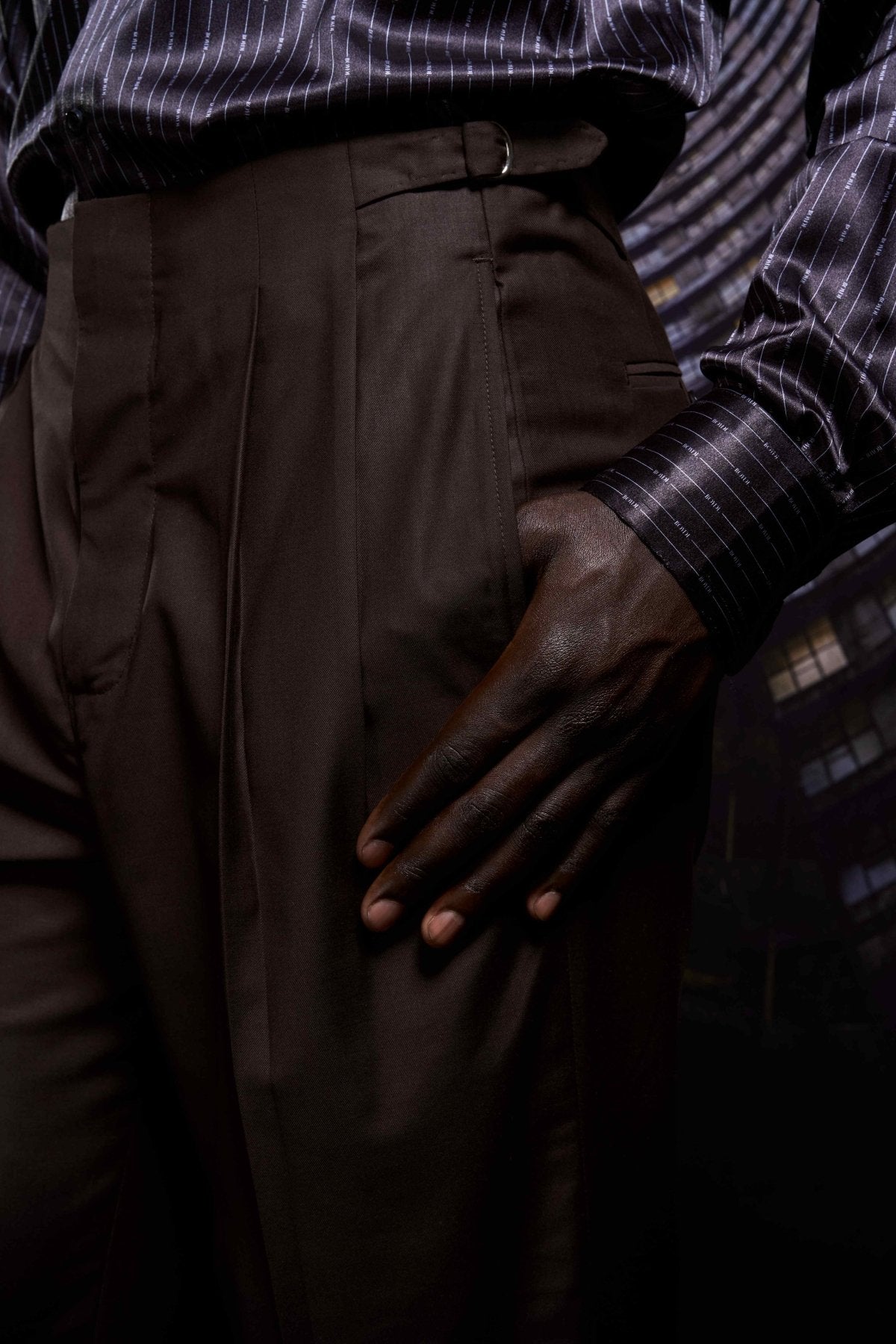 High-waisted doubled pleat tailored classic pants in chocolate wool