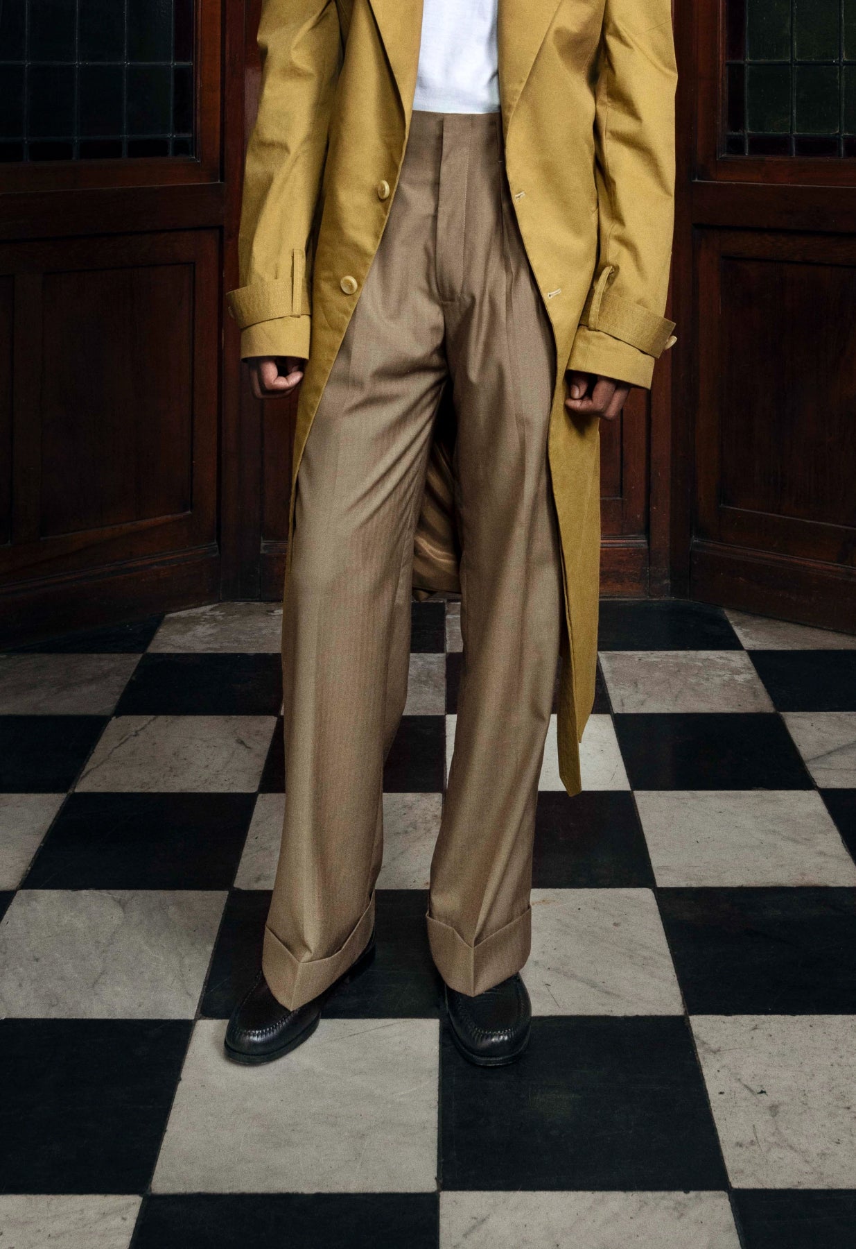 Beige wool box-pleat pants